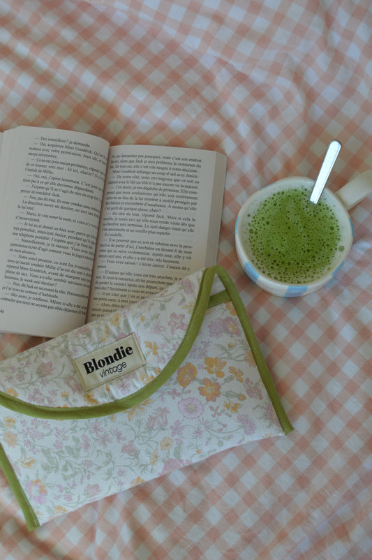 Housse livre fleurie bleu